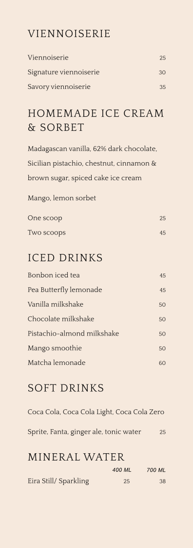- Beverages: Sip on exceptional coffee, including the rich cappuccino and the must-try Spanish latte, alongside a tempting selection of ice creams.